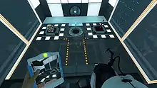 Most of Portal 2's testing elements are included in the mod, with new mechanics being taught through an instruction board.[2]