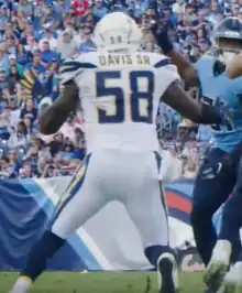 On March 13, 2019, Davis signed a two-year, $10.5 million contract with the Los Angeles Chargers.[87] In the team's season opener against the Indianapolis Colts, he recorded 14 tackles in a 30–24 overtime win.[88] Davis was released on March 13, 2020.[89]