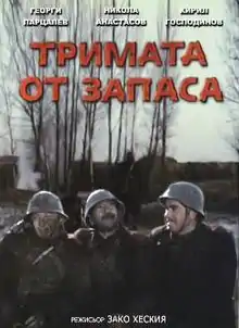 Three Reservists (Bulgarian: Тримата от запаса, romanized: Trimata ot zapasa) is a Bulgarian comedy-drama war film released in 1971, directed by Zako Heskiya, starring Georgi Partsalev, Kiril Gospodinov and Nikola Anastasov.