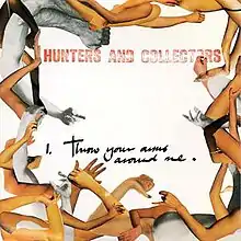 "Throw Your Arms Around Me" is a song by Australian rock band Hunters & Collectors first released as a single in November 1984 by White Label for Mushroom Records.[1] A re-recorded version of the song later appeared on the band's 1986 album Human Frailty. Written by bass guitarist John Archer, keyboardist Geoffrey Crosby, drummer Douglas Falconer, trumpet player Jack Howard, recorder/mixing engineer Robert Miles, vocalist/lead guitarist Mark Seymour and trombone player Michael Waters.[2][3] The song captures the intensity of sensual love at the same time portraying its fleeting nature with lyrics including "And we may never meet again, So shed your skin and let's get started".