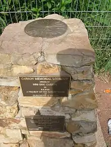 Eric Carson (1913–99), a Gloucester sawmiller and road builder, carved the first road through the ranges to bring out the magnificent hardwood from the forests on the Great Divide. After Carson spent many years trying to persuade local politicians that a road should be built across the Divide from Gloucester to Nowendoc, he went ahead and built it. Carving the 32 km (20 mi) route out of some of the steepest and most rugged countryside in the state was fraught with danger, but by 1961 it was complete.[7] Carson's Lookout, which commemorates his work is between Gloucester and Nowendoc, is a stop off point for the enjoyment of panoramic views.
