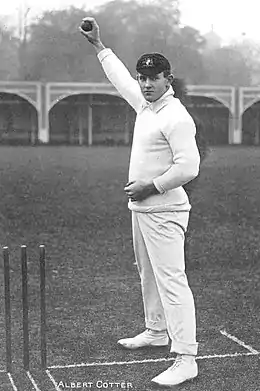Albert "Tibby" Cotter (3 December 1883 – 31 October 1917) was an Australian cricketer who played in 21 Test matches between 1904 and 1912. He served in World War I with the First Australian Imperial Force and was killed in action in the mounted charge of the 4th Light Horse Brigade at Beersheba in Ottoman Palestine.