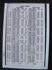 Tide table
