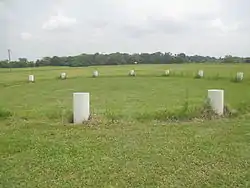 The oldest known timber circles in North American archaeology were found at Poverty Point in 2009 by archaeologists from the University of Louisiana at Monroe and Mississippi State University, led by Poverty Point station archaeologist Dr. Diana Greenlee. They discovered evidence in the 37.5 acres (15.2 ha) plaza area for multiple wooden post circular structures ranging from 82 feet (25 m) to 206 feet (63 m) in diameter; built during the earliest habitation of the site circa 2400 BCE. The site now has a ring of concrete posts marking the position of one of the circles.[7][8][9]