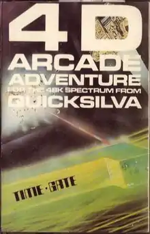 Time-Gate (also known as Timegate, 4D Time-Gate or 4D Defender) is a ZX Spectrum game from Quicksilva, and one of the first 3D combat games. The name is derived from its treatment of time as a dimension, in which one could travel (albeit backwards only). The first press launch in the UK games industry was for this title.[2]