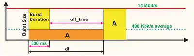 The constant bitrate of a stream can be calculated from the burst bitrate and the ON and OFF lengths: