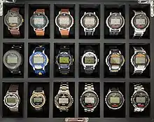Timex Datalink or Timex Data Link is a line of early smartwatches manufactured by Timex and is considered a wristwatch computer.[1] It is the first watch capable of downloading information wirelessly from a computer.[2][3] As the name implies, datalink watches are capable of data transfer through linking with a computer.[4] The Datalink line was introduced in 1994 and it was co-developed with Microsoft as a wearable alternative to mainstream PDAs with additional attributes such as water resistance, that PDAs lacked, and easy programmability.[5] The watch was demonstrated by Bill Gates on 21 June 1994 in a presentation where he downloaded information from a computer monitor using bars of light and then showed to the audience the downloaded appointments and other data.[6] The early models included models 50, 70, 150 and model 150s (small size).[5] The model numbers indicated the approximate number of phone numbers that could be stored in the watch memory.[7] These early models were, at the time of their introduction, the only watches to bear the Microsoft logo.[8][9] The watches have been certified by NASA for space travel and have been used by astronauts and cosmonauts in space missions. There had been an evolution over the years as to the number and type of entries that can be stored in the various watch models as well as the mode of data transfer between computer and watch. At the time of its introduction the watch was considered high-tech.[10]