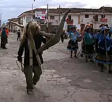 Tinya palla (Quechua tinya a kind of drum, palla dame, lady, mature woman of the Inca nobility / a Peruvian folk dance with women representing Inca princesses)[2][3] or wiqru palla (Quechua wiqru twisted, bent)[2] is a traditional dance of the Pomabamba Province in the Ancash Region in Peru.[4] In 2009 the National Institute of Culture declared tinya palla a National Cultural Heritage of Peru by Resolución Directoral Nacional No. 491/INC-2009.[5]