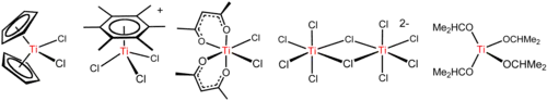 Titanium tetrachloride is a versatile reagent that forms diverse derivatives including those illustrated below.