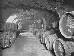 The vaults beneath the tobacco warehouses resembled the crypts of a Gothic cathedral,[1] "with chamfered granite columns under finely-executed brick groins, connected with a 20-acre "subterranean city" for the storage of wines and spirits, where they could mature at a stable temperature of 15.5 °C".[4]