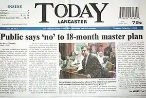 - "Today Newspapers will cease publication of its Lancaster Today with the Dec. 28 edition". Lancaster Today. 2006-12-19. Retrieved 2009-07-10.