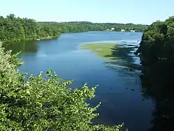 Tohickon Creek is the longest waterway located entirely in Bucks County.[4] Its tortuous course begins in the far north of the county, then generally winds east to the Delaware River. For the purpose of this article, its course can be divided into three main segments: the western half, Lake Nockamixon, and the eastern half.