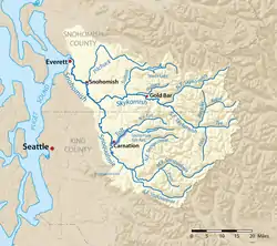 ![]() Map of the Tolt River highlighted in the Snohomish River watershed | |