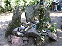 In the middle of the monument grows a holly bush on whose branches visitors place all sorts of objects.[6] Visitors leave pieces of paper there on which they write the wishes they wish to see granted by Merlin.[10] The ashes of the dead are also sometimes scattered there.[6]
