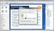 ToolBook was a Microsoft Windows based e-learning content authoring application, initially released in 1990 by Asymetrix Corporation, now SumTotal Systems. ToolBook uses a book metaphor — a project file is thought of as a book containing pages of content. This is very similar to Microsoft PowerPoint’s use of the metaphor where presentations contain various slides. ToolBook was often compared to HyperCard[1][2][3] and Visual Basic.[4][5][6]