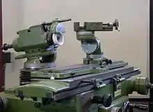 A radius grinder (or radius tool grinder) is a special grinder used for grinding the most complex tool forms, and is the historical predecessor to the CNC tool and cutter grinder. Like the CNC grinder, it may be used for other tasks where grinding spherical surfaces is necessary. The tool itself consists of three parts: The grinder head, work table, and holding fixture. The grinder head has three degrees of freedom. Vertical movement, movement into the workpiece, and tilt. These are generally set statically, and left fixed throughout operations. The work table is a T-slotted X-axis table mounted on top of a radial fixture. Mounting the X axis on top of the radius table, as opposed to the other way around, allows for complex and accurate radius grinds. The holding fixtures can be anything one can mount on a slotted table, but most commonly used is a collet or chuck fixture that indexes and has a separate Y movement to allow accurate depth setting and endmill sharpening. The dressers used on these grinders are usually quite expensive, and can dress the grinding wheel itself with a particular radius.