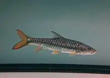 Tor putitora, the Putitor mahseer, Himalayan mahseer, or golden mahseer, is an endangered species of cyprinid fish that is found in rapid streams, riverine pools, and lakes in the Himalayan region. Its native range is within the basins of the Indus, Ganges and Brahmaputra rivers.[1]