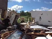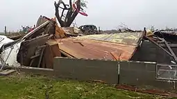 A significant tornado outbreak occurred across parts of the United States and Canada in mid-June 2014, with destructive tornadoes touching down across parts of Nebraska, Wisconsin, South Dakota, Montana, and Ontario. The event began on June 16, when a cyclic supercell thunderstorm produced a violent EF4 tornado that devastated the small town of Pilger, Nebraska. A school, a church, and numerous homes were destroyed in Pilger, one person was killed, and 16 others were critically injured in town. An identical EF4 tornado paralleled the path of the main Pilger tornado and caused a fatality in a vehicle, caused major damage to farmsteads, and debarked many trees.[47] The same parent supercell also produced two other large EF4 tornadoes that passed near the towns of Stanton and Wakefield, sweeping away multiple farm homes and lofting vehicles for hundreds of yards through the air.[48] The town of Platteville, Wisconsin was hit by a damaging EF2 tornado later that evening, while an EF1 tornado also moved through another part of town simultaneously. Significant damage to homes, an apartment building, the University of Wisconsin–Platteville campus, a gas station, power lines, and many trees occurred throughout Platteville. Strong tornadoes continued touching down into the early morning hours of June 17, as an EF2 ripped roofs off of homes in residential areas of Madison, Wisconsin, while an EF3 severely damaged a school and multiple homes in Verona.[49] Later that day, an EF3 tornado tossed several cars, obliterated a mobile home, and swept away a one-room schoolhouse in a rural area near the Custer National Forest in Montana. A massive and slow-moving EF3 wedge tornado occurred near Coleridge, Nebraska as well, scouring farm fields, and destroying a few farmsteads and a dehydration plant. In Canada, an EF2 caused significant damage to homes in Angus, Ontario as well.[50] On June 18, additional intense tornadoes occurred across parts of South Dakota, including a highly photogenic EF4 tornado that swept away a farmhouse and debarked trees as it passed near Alpena. A high-end EF2 also hit the town of Wessington Springs, resulting in major damage. Two fatalities occurred as a result of this outbreak, which produced 76 tornadoes.[51]