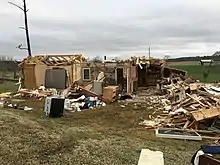 A three-day tornado outbreak affected various regions of the United States during mid-March 2019. On March 12, an EF2 tornado impacted the city of Dexter, New Mexico. The tornado damaged or destroyed several homes and mobile homes in town, injuring 6 people. It was the earliest EF1 or stronger tornado in the state of New Mexico on record and also the first tornado in Chaves County during the month of March going back to 1959.[26] Another EF2 snapped numerous power poles near Malaga as well. Over the course of March 13, a few weak tornadoes touched down in parts of Texas, including an EF0 and an EF1 that struck the town of Junction, resulting in moderate damage. Another EF1 tornado blew off roofs in Zephyr. On March 14, the Storm Prediction Center (SPC) issued an enhanced risk of severe weather from northern Indiana and northwestern Ohio southward into northern Alabama. The most notable tornado of the day was a strong EF2 tornado that caused major structural damage to several homes and a church near Lovelaceville, Kentucky, before weakening and striking West Paducah, where a mall and several businesses sustained minor damage. The tornado narrowly missed the National Weather Service office in Paducah, and was caught on video by a meteorologist on duty.[27] Another EF2 tornado struck the small town of Vernon, Michigan, where homes had roofs and exterior walls removed and a business was destroyed. Many tornadoes touched down in Alabama on the evening of March 14, almost all of which were weak. However, an EF2 that passed near Titus severely damaged multiple homes and two convenience stores. Numerous other EF0 and EF1 tornadoes touched down in parts of Kentucky, Indiana, Michigan and Ohio as well. Overall, this outbreak produced 38 tornadoes and injured eight people.[25]