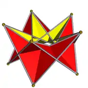 A crown polyhedron or stephanoid is a toroidal polyhedron which is also noble, being both isogonal (equal vertices) and isohedral (equal faces). Crown polyhedra are self-intersecting and topologically self-dual.[14]