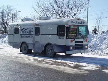 The TPL operates two Bookmobile buses (24' Blue Bird CS), targeting communities who lack easy access to a neighbourhood branch. There are 32 regular Bookmobile stops in Toronto, including one on Ward's Island.[30] The bookmobile concept was previously used in the library systems of the former municipalities of North York and Scarborough as well as in Toronto as far back as 1948.[31]