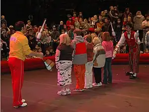 Toss juggling is the form of juggling which is most recognisable as 'juggling'.[1] Toss juggling can be used as: a performing art, a sport, a form of exercise, as meditation, a recreational pursuit or hobby.