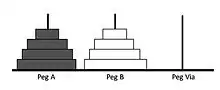 - If h > 1, then first use this procedure to move the h − 1 smaller disks from peg A to peg B.