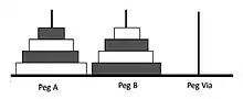 - For some , , transfer the top disks to a single peg other than the start or destination pegs, taking moves.