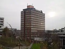In line with post-war gentrification going on in Glasgow at the time, and in line with recommendations from the Bruce Report, the 1960s saw great change in Townhead. Like Anderston and the Gorbals, Townhead was designated a Comprehensive Development Area (CDA), which meant that much of the existing buildings would be cleared and its population rehomed.[1][2] New multi-storey housing in tower blocks replaced the slum tenements, whilst others were moved to new estates on the outer fringes of the city. As a result, very few of the original tenements in Townhead have survived. The Glasgow Inner Ring Road would also cut a tranche through the area, although the controversial eastern flank (which would have literally wiped out a whole tranche of the present day Merchant City) was abandoned in the late 1970s. The plans also entailed the complete demolition and rebuilding of Glasgow Royal Infirmary, however the scheme was eventually scaled back and the original Victorian hospital was given an indefinite stay of execution. The artist Joan Eardley captured much of this redevelopment from her studio in Townhead.[3]