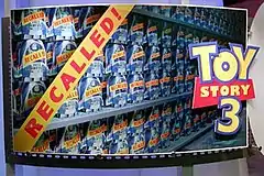 Promotional art for Circle Seven's Toy Story 3 at Siggraph 2005, displaying the storyline of the recalled Buzz Lightyears.