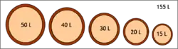 The barrel set is a series of at least five wooden casks arranged according to a decreasing size scale, where the product undergoes profound changes over time. Casks may be of different wood types (e.g. oak, mulberry, ash, chestnut, cherry, juniper, and acacia), and the smallest cask volume ranges from 15 to 25 liters. Each cask has a hole on the top, the so-called cocchiume, facilitating the usual inspection and maintenance activities. The barrel set behaves essentially as a device for vinegar concentration due to water loss through the staves. As widely known for the wine production, it is reasonable to suppose that the wood acts as a semipermeable filter for the transfer of small molecules towards the ambient while it retains important volatile compounds such as the acetic acid. However, when the opening is not hermetically closed, the volatile compounds are lost preferentially through the cocchiume itself.[20]