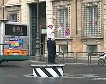 Traffic control in Rome, Italy. This traffic control podium can retract back to road level when not in use.