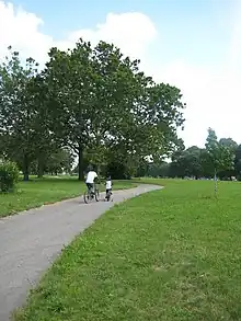 The Lyndon Avenue Greenway is a 1+1⁄2-mile (2.4 km) route in Detroit's Brightmoor neighborhood and runs between Eliza Howell Park and Stoepel Park. Besides connecting the two large area parks, the greenway also includes many pocket parks. This segment of Lyndon Avenue will have bike lanes added once the greenway is completed.[1]