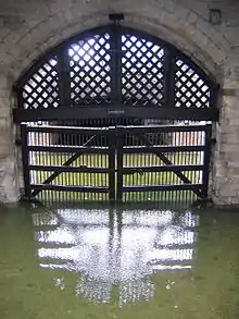 The Traitors' Gate is an entrance through which many prisoners of the Tudors arrived at the Tower of London. The gate was built by Edward I, to provide a water gate entrance to the Tower, part of St. Thomas' Tower, which was designed to provide additional accommodation for the royal family.
