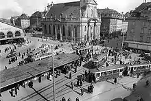 In 1911, the SSB changed the routing of lines II, III and IV. The station was now the central interchange point. The line II trams ran from Weissenbühl to Papiermühlestrasse, those of line III from Länggasse to Burgernziel, and the trams on line IV from Wabern to Länggasse. With the opening of the Hirschengraben to Friedheim section through the Monbijou Quartier in 1912, the line IV trams could now run directly to Wabern without going through the Mattenhofquartier and Weissenbühl.[2] Since then, the Weissenbühl Friedheim section has been a non-revenue track. At the same time, a new network came into operation. The lines were now given Arabic designators: