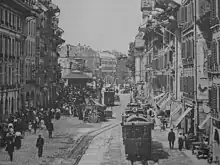 Bern's fourth tramway, line IV, was the first radial route in the Bern tramway network. It ran from the railway station to Brückfeld. Scheduled services on line IV commenced on 27 June 1908.[1] To cater for the Eidgenössische Schützenfest 1910, line III had been extended during the preceding winter months to Papiermühlestrasse. In addition, four new two-axle tram trailers had been purchased. In 1909, more than ten million passengers travelled on Bern's trams for the first time.