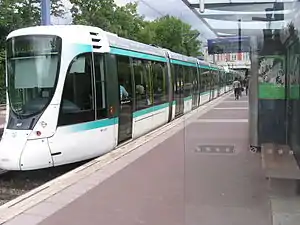 Beginning in 1852, the omnibus faced competition from the horse-drawn tramway, which ran on a track. The first tramway line ran from the Place de la Concorde to Passy, and, since it was modeled after the tramway system of New York, it was known as the chemin de fer Americain, or American railway. Additional lines were built between 1855 and 1857 between Rueil and Port-Marly and between Sèvres and Versailles. The first steam-driven trams were tried from 1876, but they were too costly and were not a success.[11] The first electric tramway line was opened in April 1892 between Saint-Denis and the Madeleine; but in 1900 most public transport was still horse-drawn; on the 89 omnibus lines and 34 tramway lines in 1900, there were 1,256 horse-drawn vehicles, and just 490 electric trams.[12]