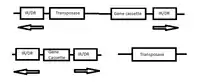 The most likely pathway of Tn 5 transposition is the common pathway for all transposon systems. It begins with Tnp binding the OE and IE sequences of each IS50 sequence. The two ends are brought together, and through oligomerization of DNA, the sequence is cut out of the chromosome. After introducing 9-base pair 5' ends in target DNA, the transposon and its incorporated genes are inserted into the target DNA, duplicating the regions on either end of the transposon.[6] Genes of interest can be genetically engineered into the transposon system between the IS50 sequences. By placing the transposon under the control of a host promoter, the genes will be expressed. Incorporated genes usually include, in addition to the gene of interest, a selectable marker to identify transformants, a eukaryotic promoter/terminator (if expressing in a eukaryote), and 3' UTR sequences to separate genes in a polycistronic stretch of sequence.
