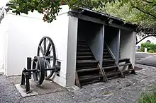 Cubitt's treadmills for punishment usually rotated around a horizontal axis, requiring the user to step upwards, like walking up an endless staircase. Those punished walked around the outside of the wheel holding a horizontal handrail for stability. By the Prison Act of 1865 every male prisoner over 16, sentenced to hard labour, had to spend three months at least of his sentence in the labour of first class, which consisted primarily of the treadmill.[7]
