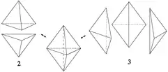 are the points lying on straights between points in and in . Choose such that for any lying not in . A new complex , can be obtained by replacing by . This replacement is called a Pachner move. The theorem of Pachner states that whenever two triangulated manifolds are PL- equivalent, there is a series of Pachner moves transforming both into another.[17]