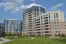 Following a period of struggle, Tridel revived itself as one of the city’s biggest developers during the 2000s housing boom.[9] The late 1990s and early years of the 21st century saw an unprecedented building boom occur in Toronto and Tridel was a central player. Today the Tridel group consists of a group of companies including building company Deltera (Construction Management), Del Realty Incorporated Brokerage (Real Estate Broker), Del Property Management (Condominium Property Management), DelSuites (Corporate Housing), Del Condominium Rentals (Condominium Rental Management), The DMS Group (Property Services) and Delmanor (Retirement Living). The boom has seen Tridel erect condominium towers across the Toronto area. Tridel has also been praised for its innovative technology and especially its focus on environmentally friendly design.[10]
