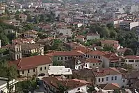 The 17th-century Ottoman traveller Evliya Çelebi reports that the city had 2,300 houses divided into sixteen Muslim and eight Christian quarters (mahalla); eight mosques, of which only the city's main mosque, the Osman Shah Mosque built by Mimar Sinan, survives today; four hammams; six tekkes; and the probably exaggerated number of 1,000 shops, although Evliya curiously does not mention the city's impressive bezesten (covered market) which was demolished in the early 20th century.[6] The city was largely burned down in a great fire in 1749, a destruction repeated by Albanian irregulars following an abortive uprising by the local Christian population during the Orlov Revolt. Despite the destruction, its population seems to have remained the same, ca. 25,000, until the outbreak of the Greek Revolution in 1821.[6] By 1840, it reportedly had only 10,000 inhabitants, with the last Ottoman census in 1877/8 listing 25,000 inhabitants for the entire sanjak of Trikala.[6]