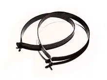 Bicycle clips, also called trouser clips, are small C-shaped pieces of thin metal worn around the ankle when cycling in trousers. They are designed to prevent the bottom of the trousers from becoming caught in the chain or crank mechanism, and from being covered in oil and dirt.[1] Additionally, they may have fluorescent (usually yellow) and reflective materials attached which make the cyclist more visible.