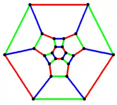 In the mathematical field of graph theory, a truncated octahedral graph is the graph of vertices and edges of the truncated octahedron. It has 24 vertices and 36 edges, and is a cubic Archimedean graph.[5] It has book thickness 3 and queue number 2.[6]