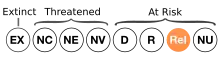 The tuatara (Sphenodon punctatus) has been protected by law since 1895.[18][19] A second species, the Brothers Island tuatara S. guntheri, (Buller, 1877), was recognised in 1989,[14] but since 2009 it has been reclassified as a subspecies (S.p. guntheri).[20][21] Tuatara, like many of New Zealand's native animals, are threatened by habitat loss and introduced predators, such as the Polynesian rat (Rattus exulans). Tuatara were extinct on the mainland, with the remaining populations confined to 32 offshore islands[12] until the first North Island release into the heavily fenced and monitored Karori Wildlife Sanctuary (now named "Zealandia") in 2005.[22]