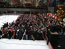 The first TubaChristmas was organized by Harvey G. Phillips to honor his tuba teacher William Bell, born on Christmas Day 1902. It was held December 22, 1974, in the ice skating rink at New York City's Rockefeller Center; Paul Lavalle conducted.[1] Over 300 musicians played that day, beginning a holiday tradition. The arrangements of the Christmas carols were written by Alec Wilder, who coincidentally died on Christmas Eve 1980.