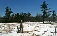 Its features include the Lake Compounce Amusement Park (and its "non-ski lift"), "Tory Den", the "Mile of Ledges", colonial era cemeteries, several caves (including the "Indian Council Caves"), waterfalls, cliff faces, woodlands, swamps, lakes, river flood plains, farmland, historic sites, and the summits of Pine Mountain and Southington Mountain.[1] The Tunxis Trail, maintained largely through the efforts of the Connecticut Forest and Park Association.