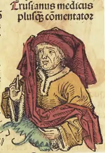 Turisanus de Turisanis[1] was the Latin name of Pietro Torrigiano de' Torrigiani (died c. 1320), a theoretical physician[2] from a well-known Florentine family[3] who taught medicine in Paris, c. 1305–19,[4] and wrote an elaborated and influential[5] series of commentaries on Galen's Microtechni, Plusquam commentum in Microtechni Galenii and a shorter De hypostasi urine Galeni. The two commentaries, all that survives of Torrigiani's output, were printed together by Ugo Rugerius[6] in 1489, and in several later editions, both incunabula and 16th-century printings. The work took the conventional form of the set of quaestiones disputatae familiar in Scholasticism.
