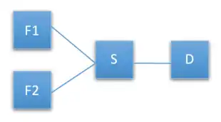 For example, consider figure 7 below. Say there are multiple routers, F1, F2 etc., that feed packets to a congested, but low-cost link from source router S to destination router D. Implementing Turn restriction routing means that some of the turns from any of the feeder routers to the congested router S may now be restricted. Those feeder routers may have to use a longer path to get to destination D, thereby decongesting the link from S to D to an extent.