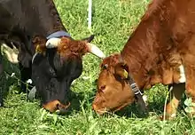 The Tux-Zillertal, German: Tux-Zillertaler, is an endangered Austrian breed of domestic cattle. It was created in 1982 when two similar Alpine breeds, the Tux and the Zillertal, were merged.[2]: 317 [1] The two names derive from those of the municipality of Tux in the Tuxertal, and of the neighbouring Zillertal, both in the Tirol region of Austria. The Tux-Zillertal may derive from the Swiss Hérens breed. Like the Hérens, it was long selected for the fighting ability of the cows, at the expense of productive characteristics.[3]: 116